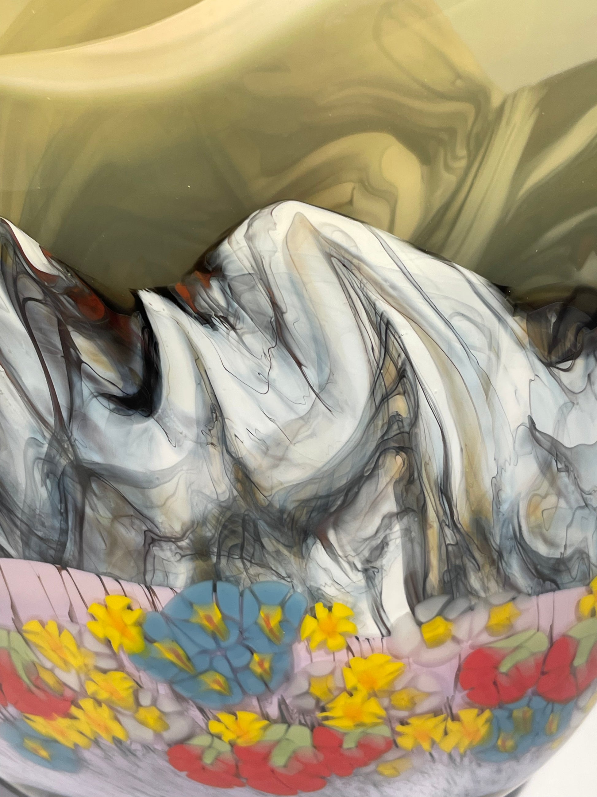 The process is an interesting one that rides the line between technique and intuition. Glass can be a frustrating material to work with but also very rewarding when it comes together. What makes these new pieces different from anything I've made in the past is the use of colour. There is a lot of glass colour used in each of these pieces, as well, the colours are separated by layers of clear glass. Using the clear to separate the colour helps to give the sense of depth with the imagery. Although I do have some control of how the colour is applied, there is definitely some guess work in trying to make it look like something specific. Many of the manipulations of the colour are purely spur of the moment, intuitive movements. As a result, this and the different chemistry in the varying colours of glass, nothing ever works out the same. For me this is part of the excitement of each of these pieces." - Ryan Bavin